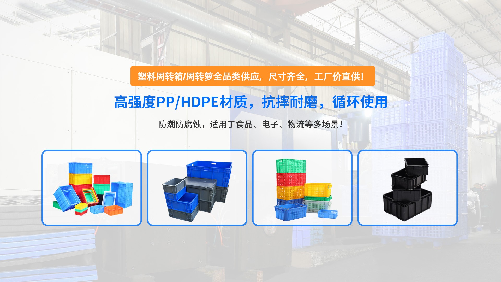 東莞市惠通塑膠制品有限公司老廠成立于2006年,是一家專業從事塑料托盤、塑料周轉箱、物流包裝容器 等塑膠制品研發、生產與銷售的高新技術企業。憑借十多年的行業深耕 ,我們已與多家知名上市公司建立長期穩定的合作關系,產品廣泛應用于物流倉儲、食品加工、電子制造、醫藥化工 等行業。